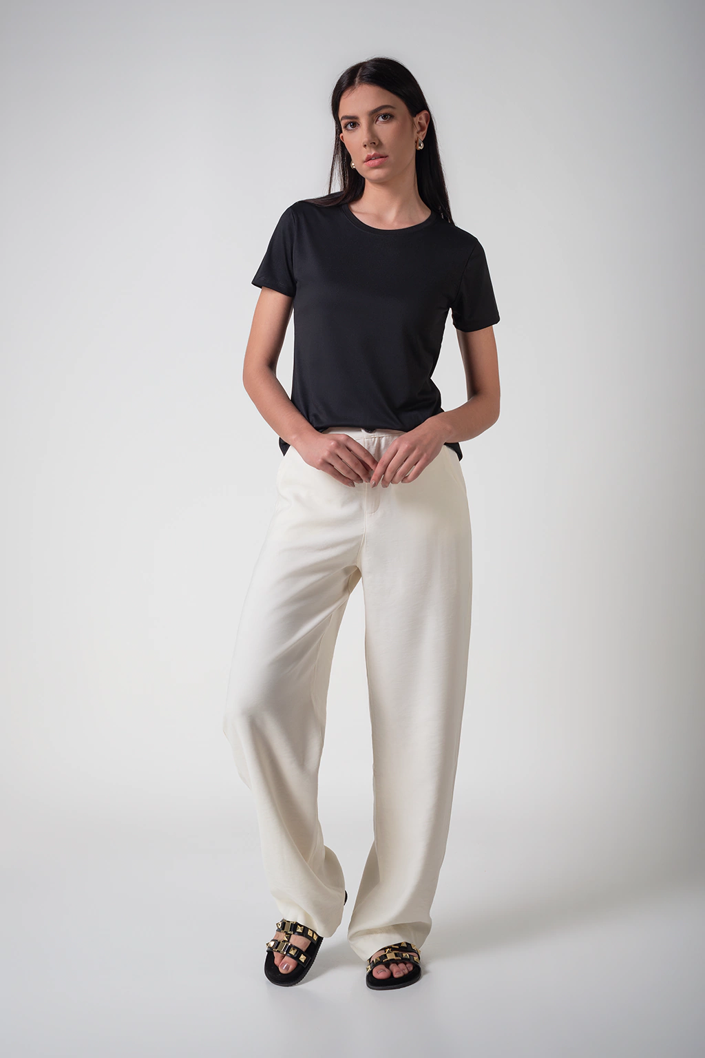 Versátil, a blusa básica lisa é um item indispensável no armário feminino. Com ela você pode criar diversas composições, do casual até o mais cool. Para um visual minimalista, combine a blusa básica com alfaiataria e papete. Além de confortável é hit e fica chic!