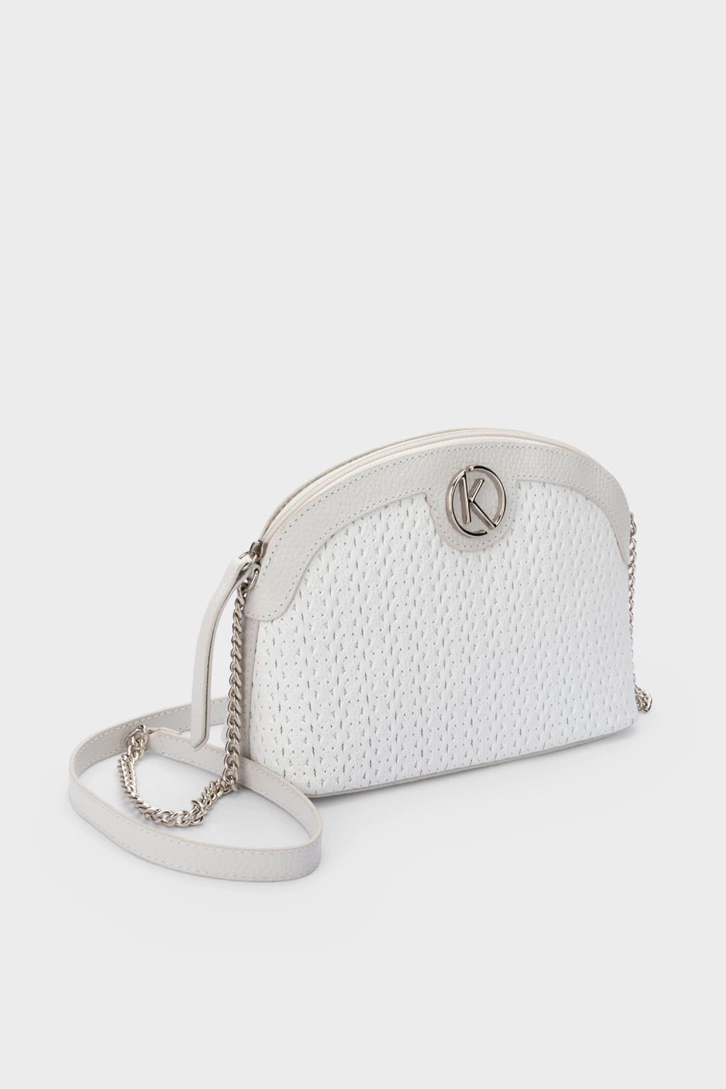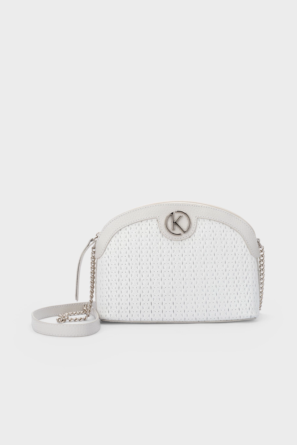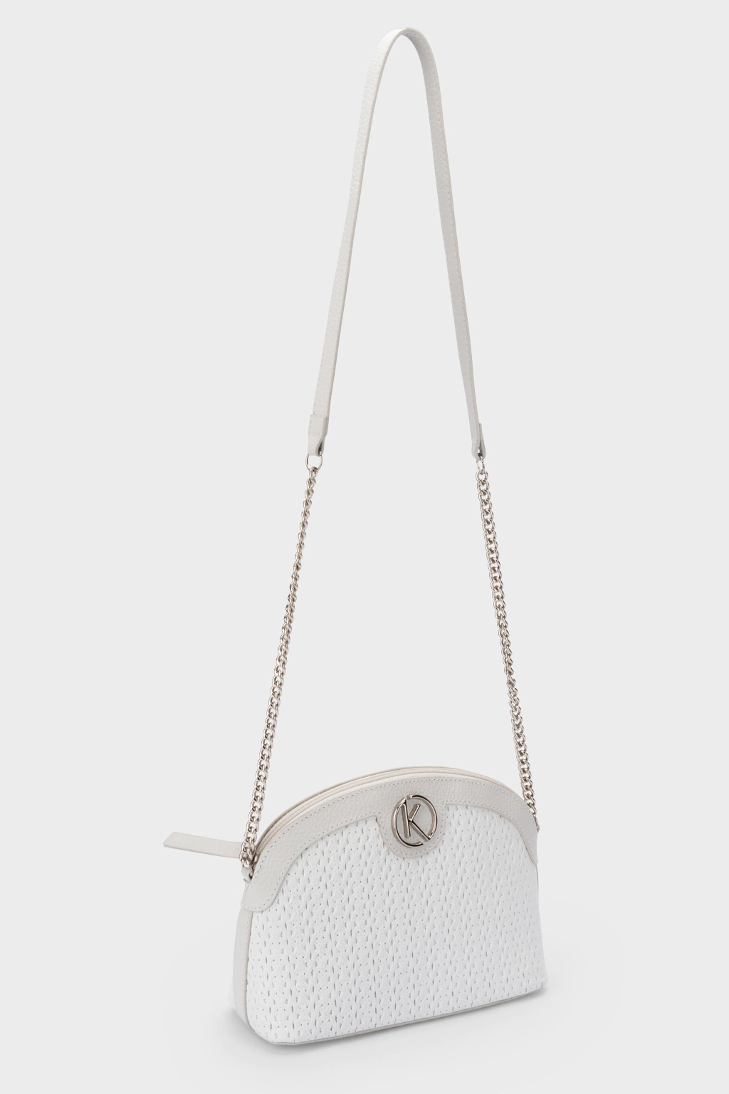 Descrição: Bolsa tiracolo pequena em couro Branca. O modelo tem formato estruturado, possui bolso interno com ziper.