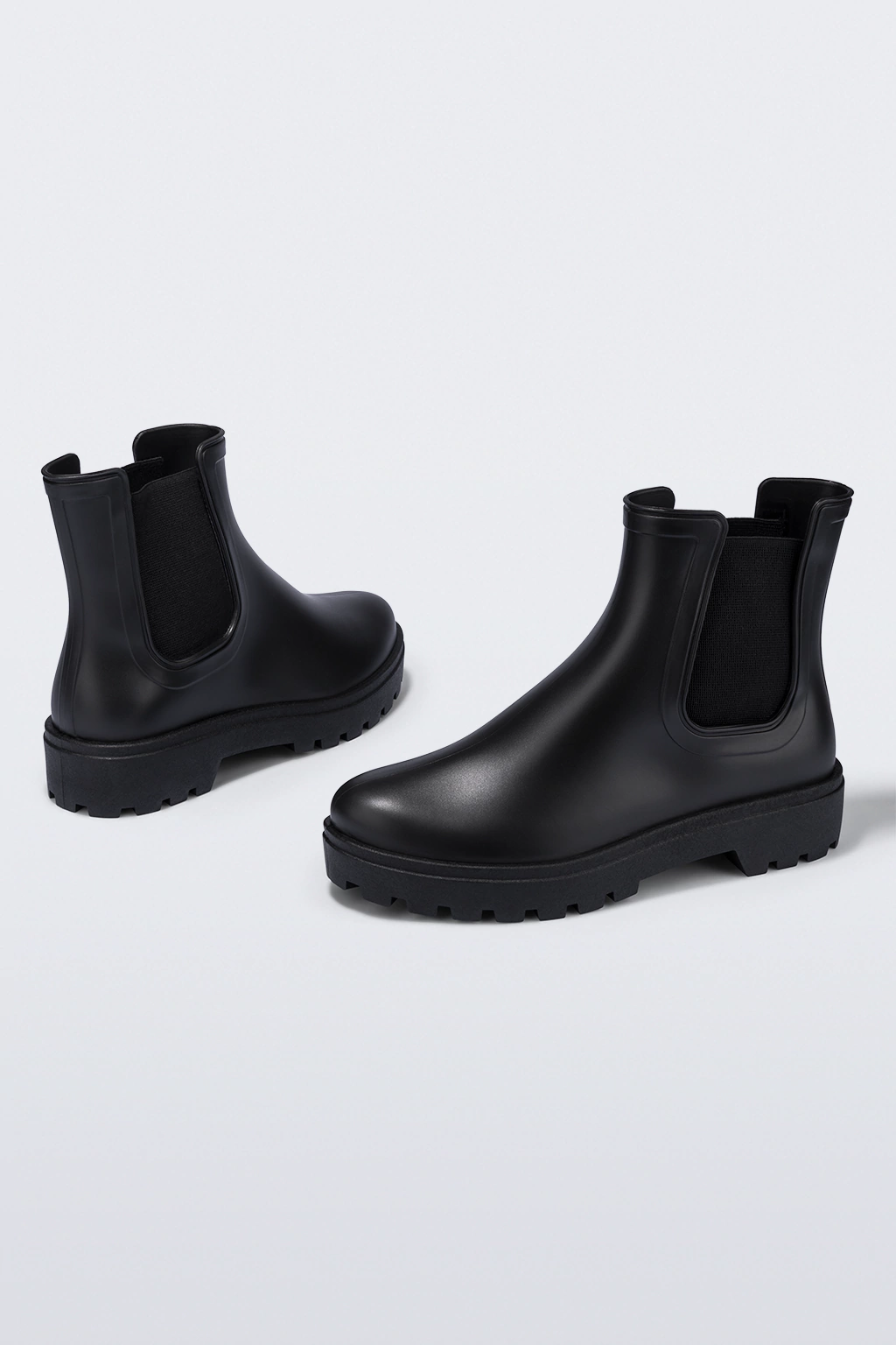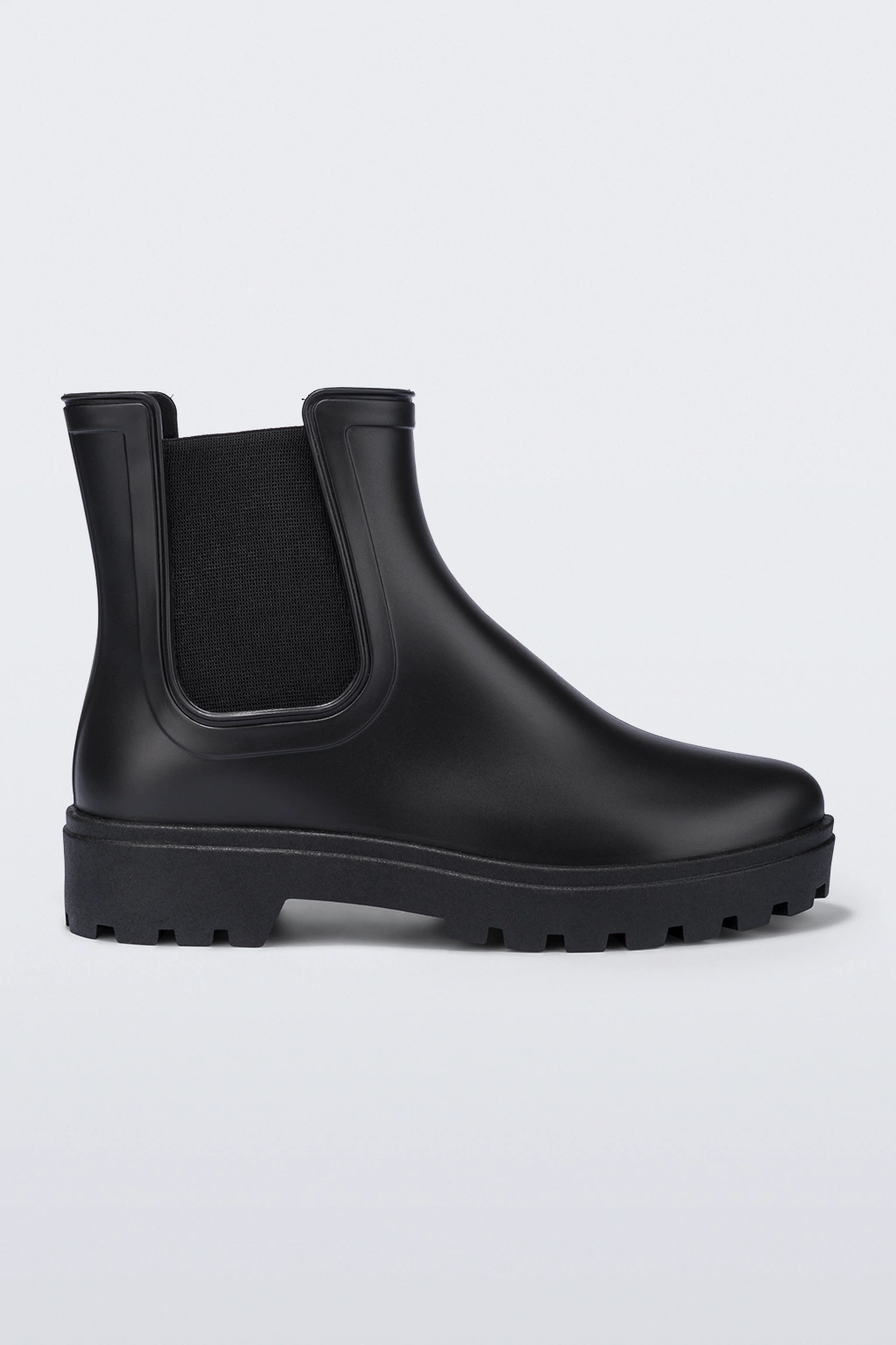 Bota Femina com Solado Tratorado injetada em PVC, com elástico nas laterais.