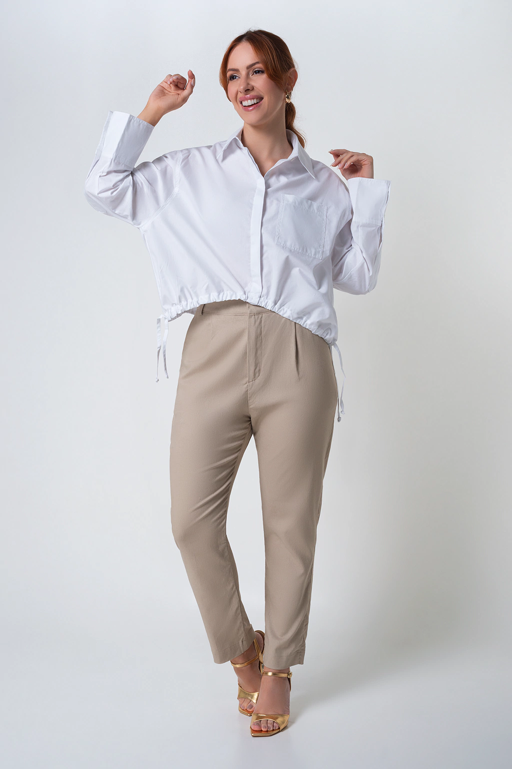 A camisa cropped é a definição de modernidade. Com ela você pode criar diversas composições de look. Essa camisa branca tem a modelagem ampla e barra com regulagem que permite ajustar como você preferir. Combine com jeans para um visual mais cool ou com alfaiataria para um visual mais chic.