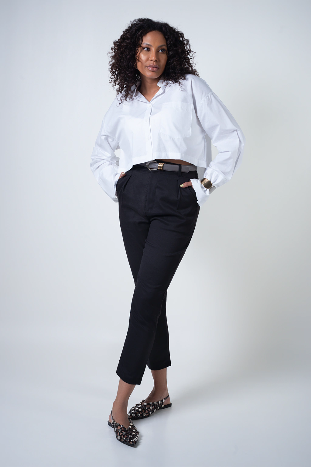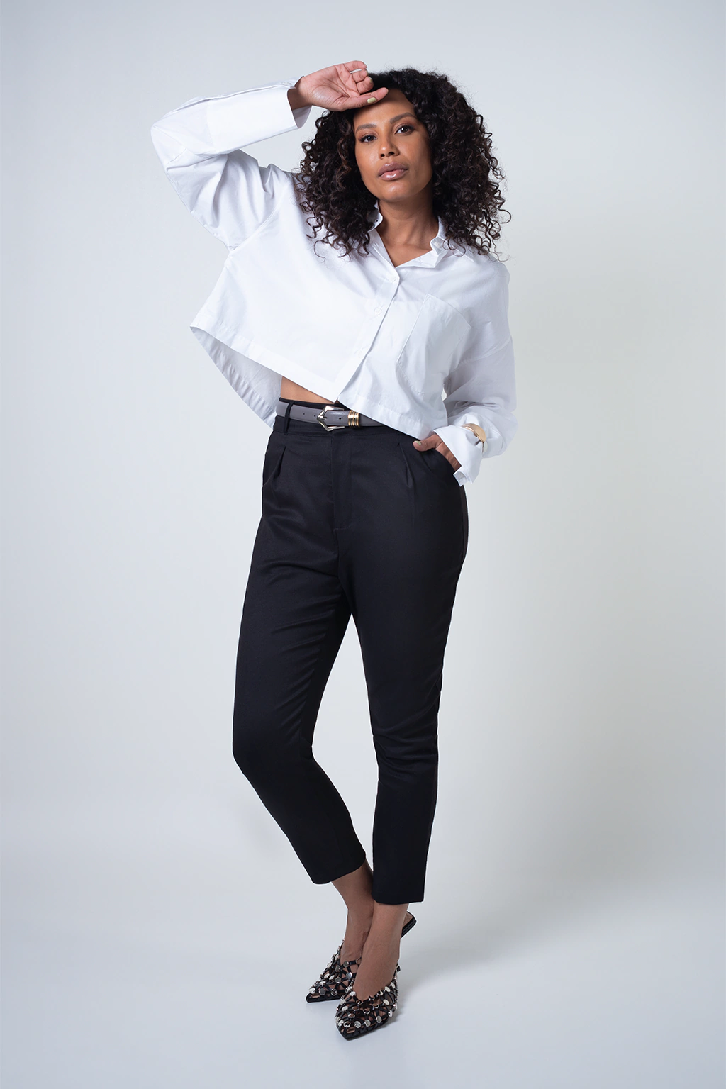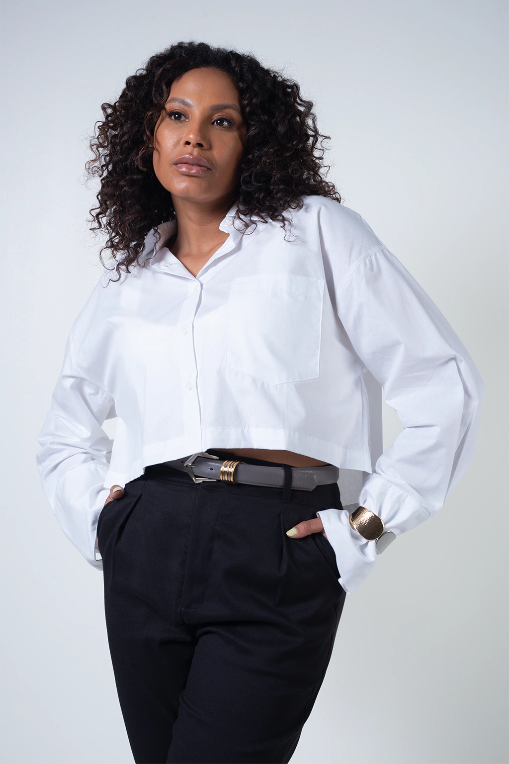 A camisa cropped é a definição de modernidade. Com ela você pode criar diversas composições. Essa camisa branca tem a modelagem ampla, ombro deslocado e manga bem fashionista. Combine com jeans para um visual mais cool ou com alfaiataria para um visual mais chic.