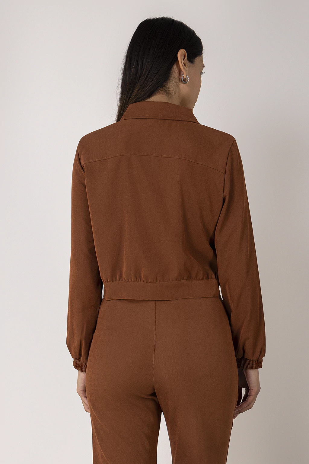 Uma peça diferenciada para você ter no seu guarda-roupa é a jaqueta curta. O destaque esta na textura aveludada, modelagem com caimento perfeito. Para diversas composições, do office look ao passeio. Para um look super prático, sofisticado e descomplicado combine com a calça que faz conjunto com a jaqueta.