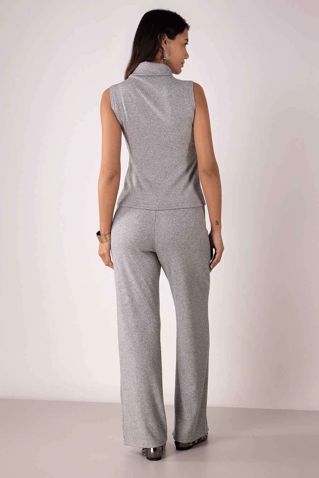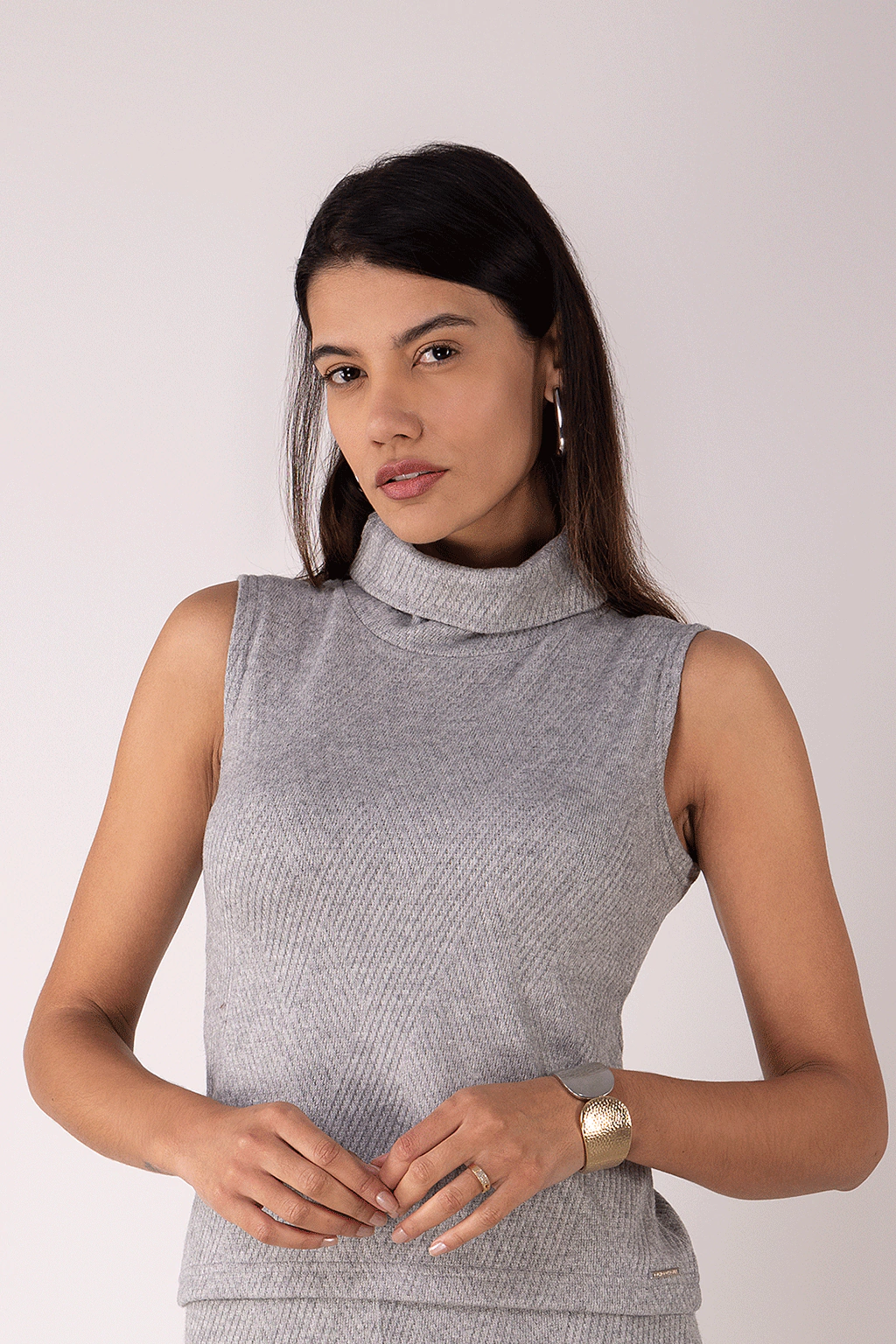 Feita para proporcionar conforto sem abrir mão do estilo, nossa regata em tricô oferece um toque macio e confortável a pele, ajustando-se perfeitamente ao corpo, valorizando a silhueta de forma sutil. Sua versatilidade permite que seja usada tanto sozinha em dias mais amenos, quanto como peça-chave em sobreposições. A cor cinza neutra facilita as combinações, tornando-a uma excelente escolha para compor seus looks. Nossa sugestão é combinar com a Calça Reta Tricot Geométrica Cinza da mesma coleção. Aposte!