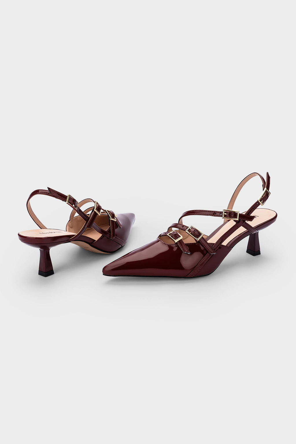 Um clássico renovado! O sapato de bico fino scarpin slingback está em alta, seguindo a tendência ele aparece em couro verniz com tiras delicadas com fivelas. Com salto baixo, kitten heel, alia estilo e conforto, ele é ótimo para dar um up nos looks, e transita bem entre várias ocasiões.