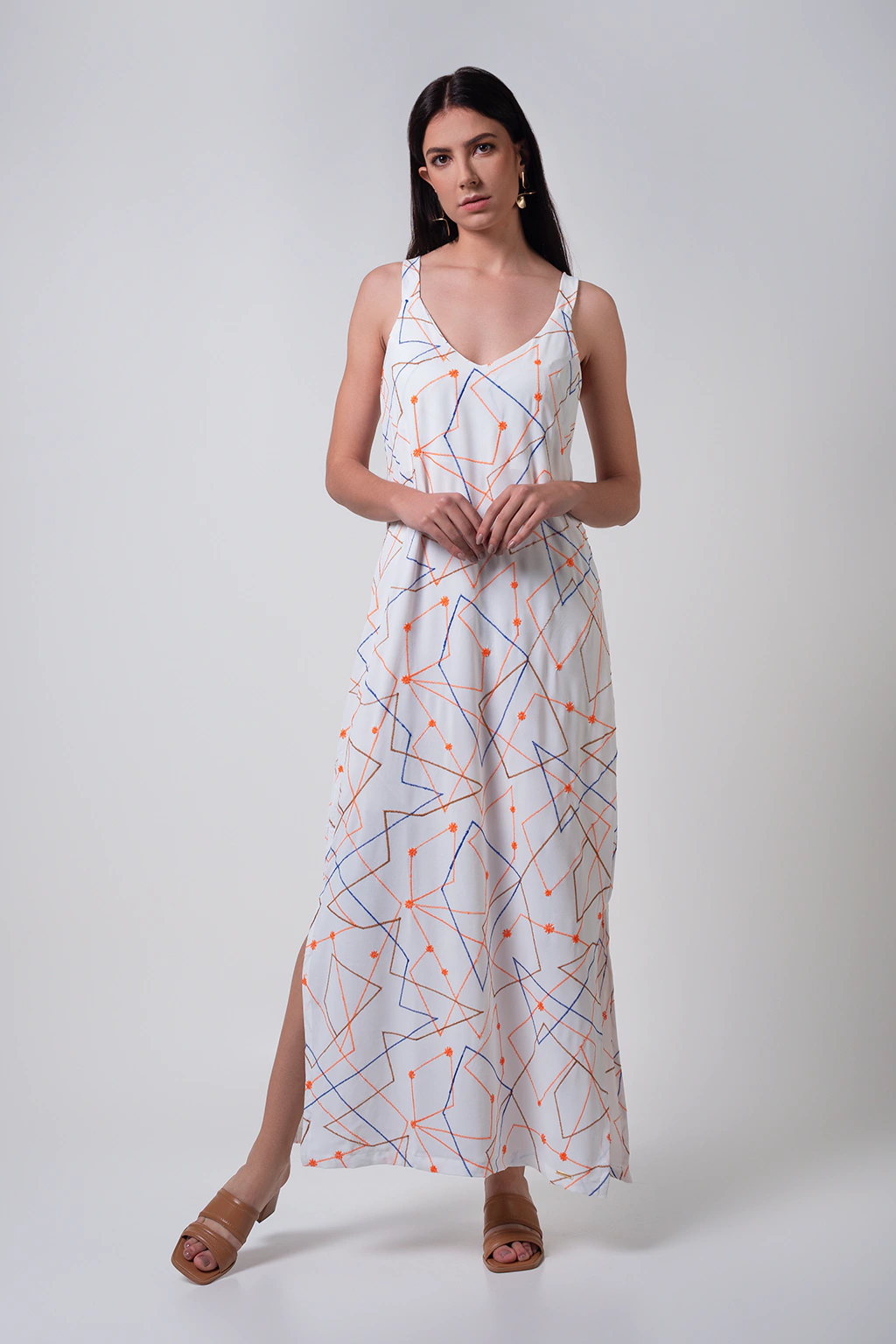 Com tecido leve, caimento fluido e esse bordado que é a cara do verão esse vestido é perfeito para a estação. Aquela peça vestiu e saiu, um misto perfeito entre modelagem confortável e visual poderoso que deixa qualquer mulher mais confiante.